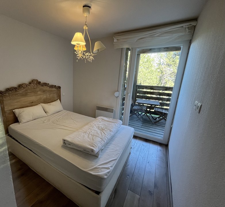 Réf 31Z\r Proche pistes Appartement de type T2 cabine 4/6 pers en rez de jardin comprenant :\r Une entrée avec lit superposé en 90\r Une chambre avec un lit en 140\r Un salon avec un canapé convertible en 140\r Une kitchenette équipée :\r Plaques électriques x2, frigo top, micro ondes, four, cafetière, bouilloire, grille pain.\r Une salle d\'eau wc \r Un balcon qui donne sur un jardin \r Une cave avec la machine à laver \r Une place de parking \r A 100 m de la piste la Baliu, 2 km du centre et de l\'espace balneo\r En bordure de forêt, idéal pour observer les animaux !\r Linge de maison non fourni.