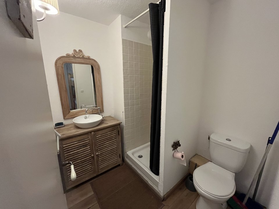 Réf 33Z\r Beau T2 cabine 4/6 pers secteur Pla Del Mir comprenant:\r Une entrée avec lit superposé en 90\r Une chambre avec un lit en 140\r Un salon avec canapé convertible en 140\r Une kitchenette équipée: Lave vaisselle, four, micro-ondes, lave lin...