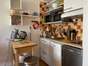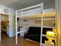 Une entrée, une kitchenette avec un espace couchage lit superposés en 90 cm, coin repas, salon canapé et télévisi...
