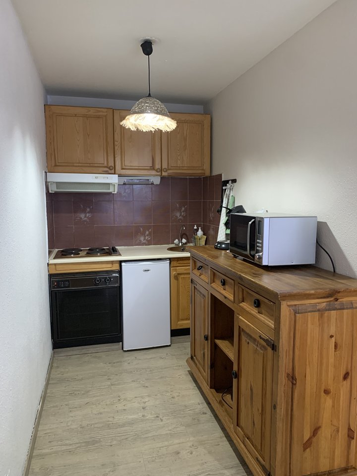 Réf 31Z\r Proche pistes Appartement de type T2 cabine 4/6 pers en rez de jardin comprenant :\r Une entrée avec lit superposé en 90\r Une chambre avec un lit en 140\r Un salon avec un canapé convertible en 140\r Une kitchenette équipée :\r Plaques éle...