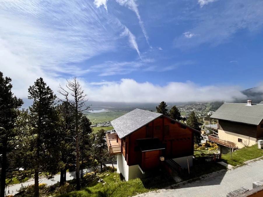 Beau chalet sur les hauteurs du village, situé dans une impasse proche de la forêt avec vue magnifique sur le lac et le village composé: D'un sas d'entrée, une buanderie, un garage, à l'étage, salon avec insert ouvrant sur une belle cuisine, un balcon avec accès à un petit jardin, cinq chambres, un espace TV cocooning, une salle d'eau, WC séparé, une salle de bain WC.