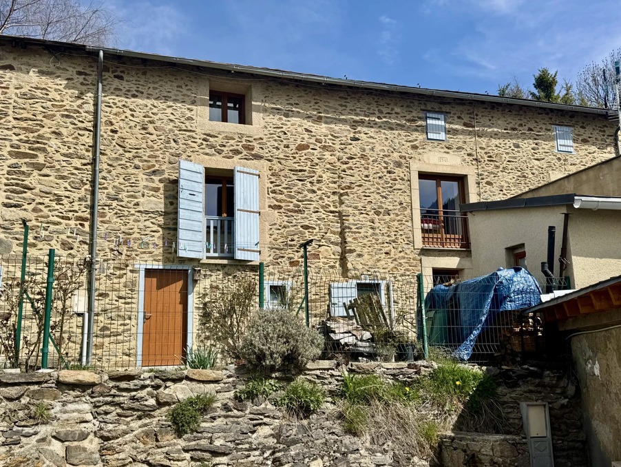 Au premier étage : une belle pièce à vivre avec poêle à bois, une cuisine équipée récente ouvrant sur une très belle terrasse, une grande chambre avec placard, une salle d'eau, des toilettes, un cellier.