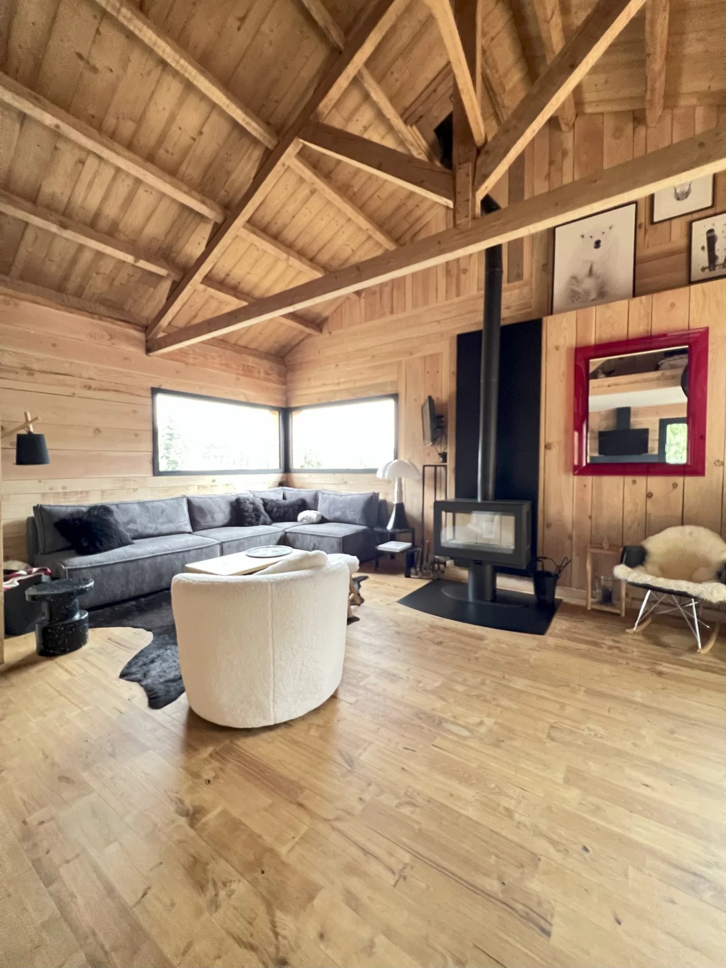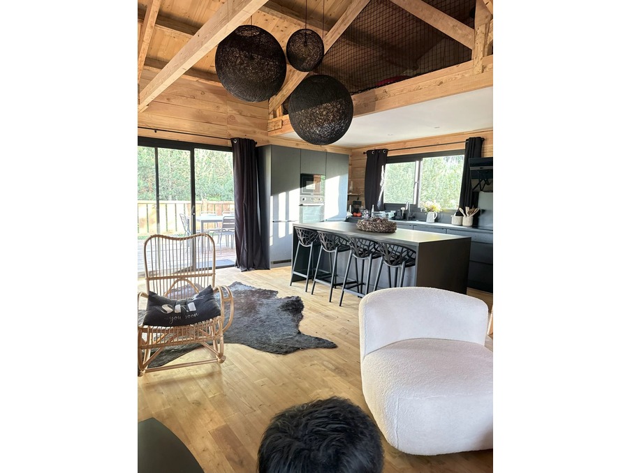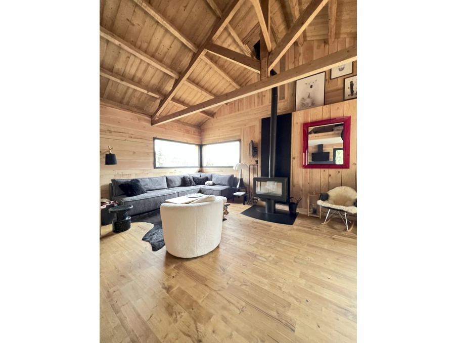 Dans un secteur calme et boisé, magnifique chalet 4 faces en madrier et en pierre récent composé d'une très belle pièce à vivre ouvrant sur une terrasse, une cuisine parfaitement équipée, 4 belles chambres, une salle d'eau, une salle de bains, 3 WC,...